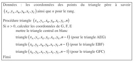 Algorithme récursif pour le triangle de Sierpinski :