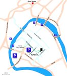En voiture Les parkings les plus pratiques sont le parking gratuit Chamars et le parking de la mairie payant, à moins de 600m de l’accueil, au centre ville. Dès l’entrée dans Besançon, vous pourrez suivre les pancartes touristiques jaunes disposées par les services municipaux.