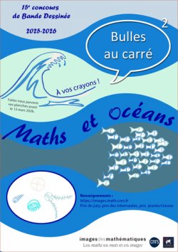 Organisé par la revue en ligne « Images des Mathématiques », ce concours de bandes dessinées a pour thème « Maths et océans ». Il est ouvert jusqu’au vendredi 13 mars 2026 à tous les non professionnels de la bande dessinée : en solo, en duo (scénariste/dessinateur) à partir de 14 ans, ou en groupe (une participation de classe est possible dès le primaire).