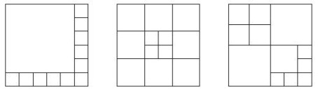 Supposons que l’on dispose d’un carré et d’une paire de ciseaux et que l’on veuille découper ce carré en parties carrées. Il revient au même de tracer une partition du carré initial en parties toutes carrées.