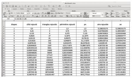 IV. Calcul des périmètres et des aires des fractales avec Excel