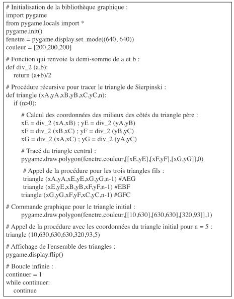 Algorithme récursif pour le triangle de Sierpinski :