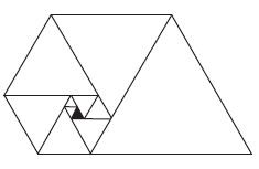 En partant du triangle équilatéral noir de côté 1, les triangles successifs, s’enroulant dans le sens indirect, ont pour longueur de côté 1, 1, 1, 2, 2, 3, 4, 5, 7, 9, 12, 16, 21, … Ce sont les nombres de la suite de Padovan $P_a$ qui satisfait la récurrence $P_a(n + 1) = P_a(n − 1) + P_a(n − 2)$.