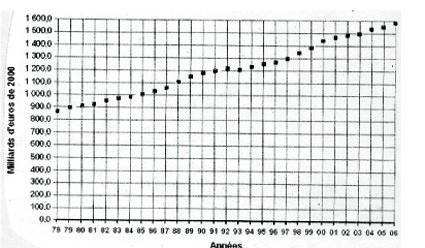 On donne les deux graphiques suivants : le premier est celui de la page 441 du manuel de SES, le deuxième a été obtenu sur le site de l’INSEE pour actualiser les données.