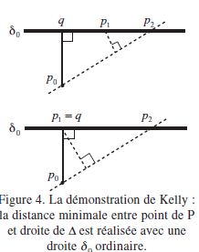 Pour tout point p de P et pour toute droite $\delta$ de $\Delta$ qui ne passe par p, Kelly note d(p,$\delta$ ) la
