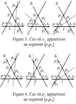 Cela correspond à deux configurations possibles : soit $x_1$ appartient au segment [$p_2p_3$], soit $p_1$ appartient au segment [$p_2p_3$] (voir Figures 5 et 6).