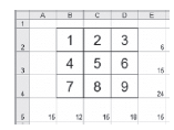 Au départ la feuille de calcul est vierge. Les élèves ayant une certaine pratique du tableur, on construit rapidement le carré ci-contre.