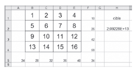 La grille de départ contient les entiers de 1 à 9, ce qui permet de connaître immédiatement la valeur cible à atteindre, la cellule G3 contenant la formule « = produit (B2 : D4) ».