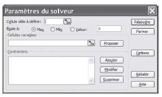 En général, le solveur n’est pas installé par défaut. Pour le charger, dérouler le menu Outils – macros complémentaires et cocher solveur. Pour l’utiliser, dérouler de nouveau le menu outils et sélectionner solveur.