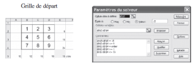 Il s’agit de montrer comment on peut construire un carré magique 3 × 3 avec le solveur.Dans un premier temps, j’explique avec l’aide du tableur ce qu’est un carré magique.