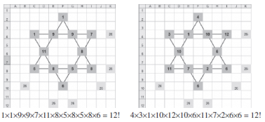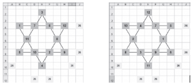 La deuxième est une étoile multi magique obtenue avec la contrainte supplémentaire :