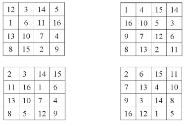 Construction du carré magique 4 × 4