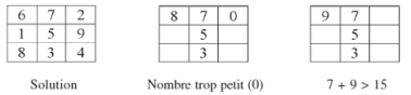 Le but du problème est de placer les 9 nombres entiers dans la grille de telle façon que toutes les sommes, en ligne, colonne et diagonale soient égales.