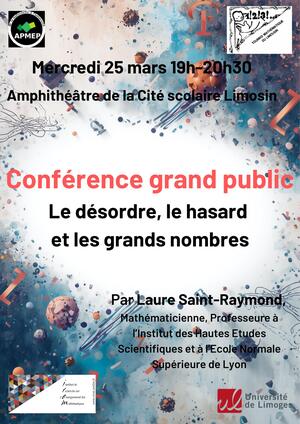 À Limoges, mardi 17 mars et mercredi 25 mars 2026, dans l’auditorium de la cité scolaire Léonard-Limosin, auront lieu 2 conférences de mathématiques, soutenues par la Régionale de Limoges.