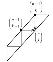 $\begin{pmatrix}n \\k\end{pmatrix}$ = $\begin{pmatrix}n -1\\k\end{pmatrix}+ \begin{pmatrix}n-1\\k-1\end{pmatrix}$