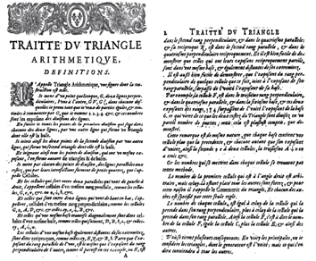 leur consacre un traité : « Traité du triangle arithmétique » en 1654 (publié à Paris en