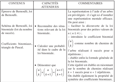 m’amène à faire quelques remarques pour la mise en place de la loi binomiale.