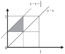 Si x > y, on trouve comme surface « solution » le triangle symétrique de celui ci dessus par rapport à la diagonale du carré « y = x », donc de nouveau une probabilité de ${1 \over 8}$..