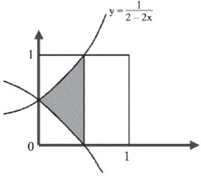 En plongeant dans le modèle continu, cela va se traduire par le rapport de l’aire de la surface où se trouvent ces points solutions à l’aire totale possible qui est ici celle du carré [0,1] × [0,1], c’est-à-dire 1 (la notion d’ouvert et de fermé n’ayant pas d’importance compte tenu de la modélisation).