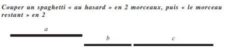 Couper un spaghetti « au hasard » en 2 morceaux, puis « le morceau restant » en 2