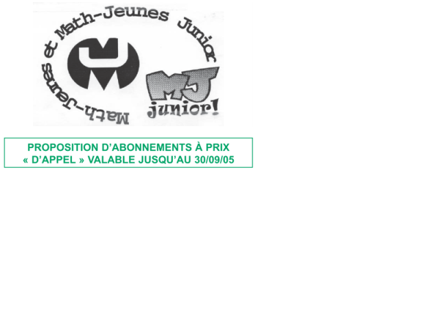 MATH-JEUNES JUNIOR est apparue voici quelque huit ans en vue de diversifier le public touché, avec, au départ, des textes ou un numéro commun aux deux revues.