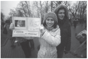 Parmi les slogans : « Nous croyons Gauss, nous ne croyons pas Tchourov ! » [2].