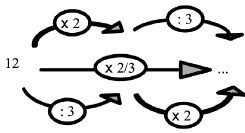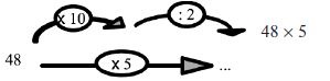 La multiplication et la division se présentent comme deux opérations successives et commutatives sans l’obstacle de la syntaxe ou sans les présenter comme deux opérations séparées ; le but étant une prise de conscience par l’élève des différentes stratégies, plus ou moins efficaces, qui s’offrent à lui. Dans un second temps, à travers d’autres exercices, l’élève pourra choisir la méthode qui semble mieux lui convenir ou comprendra qu’il peut adapter son choix à la situation.