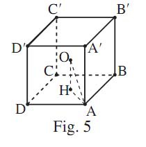 Soit un cube K de côté $\ell$, O son centre, A un sommet, H le