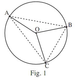 angles $\widehat{AOB}$, $\widehat{BOC}$ et $\widehat{COA}$ aussi grand que possible. Si les points A, B, C sont sur un même demi-cercle, le plus petit des trois