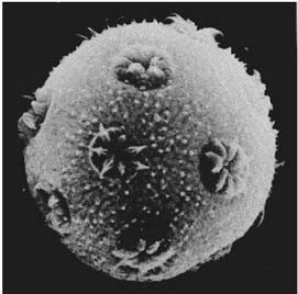 étudiant les grains de pollen, que ces grains [1], approximativement sphériques, portent des orifices