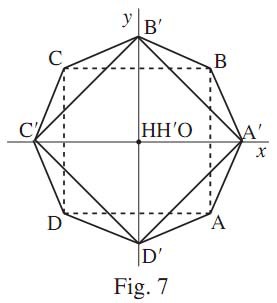 que le milieu O de [HH′] est équidistant des huit points sommets des carrés. O est