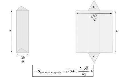 - l’aire totale d’une frite à base triangulaire d’aire S et de hauteur h données vaut :