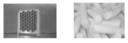Traditionnellement, les alvéoles des grilles pour découper les frites sont formées de carrés isométriques dont les longueurs des côtés mesurent respectivement 6 mm, 8 mm et 10 mm. C’est-à-dire $36 mm^2$ , 64 $mm^2$ et 100 $mm^2$ d’aire.
