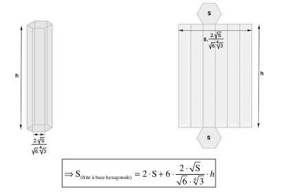 - l’aire totale d’une frite à base hexagonale d’aire S et de hauteur h données vaut :