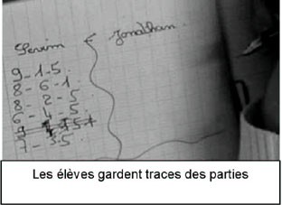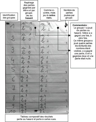 Chaque groupe de deux joueurs joue dix parties et note le nombre de parties gagnées