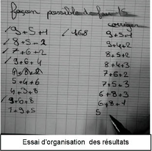 Travail sur les décompositions additives, sur les compléments d’une somme à quinze.