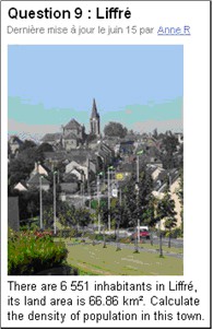 N’ayant plus de partenaire européen au niveau 6e, j’accepte la proposition d’une collègue finlandaise qui a trouvé la description de mon projet intéressant : Using both Mathematics and English, students imagine and write problems about their countries and regions of origin. For example, make out where their towns are located, calculate distances between them, compare life in their native countries…….