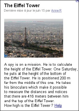 Ayant plus d’expérience que mes partenaires dans l’aventure eTwinning, je propose en introduction une carte Visit in Paris, créée avec Google Maps, où j’ai inséré 5 histoires-problèmes écrites au cours du précédent projet.