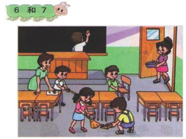 problèmes. Je vais maintenant présenter un petit exemple tiré d’un manuel de CP, introduisant les nombres 6 et 7, avec un commentaire extrait et un peu adapté des curricula chinois.