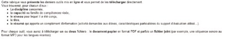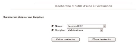 Revenant à la base de données tout entière, un moteur de recherche permet de sélectionner des outils d’évaluation par niveau et par discipline. J’ai choisi, à titre d’exemple, la Seconde LEGT.