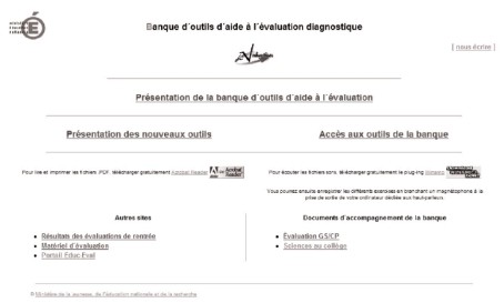 Complétons la liste des sites déjà présentés, par la Banque d’outils d’aide à l’évaluation diagnostique [3], dont voici la page d’entrée.