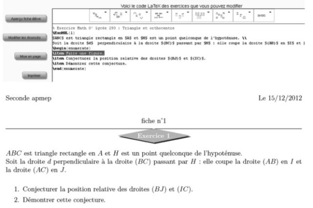 utilisant l’éditeur LateX en ligne. Par exemple, à partir de l’énoncé de la fiche n°1 :