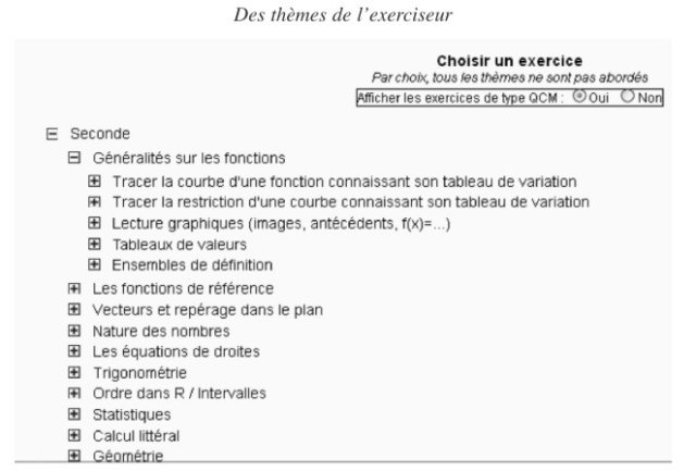 Nous proposons, sur le site, un exerciseur lié à l’arbre des compétences, avec des