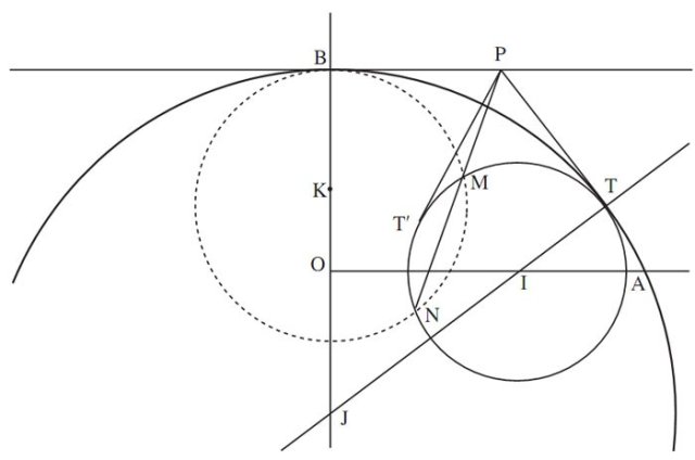 Le rayon R du cercle de centre J vérifie alors R = b + v où v ≥ 0.
