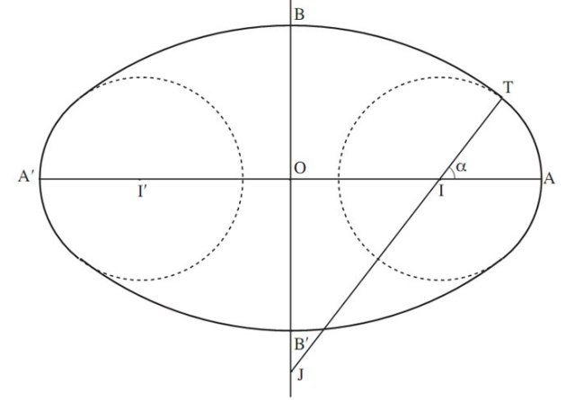 On désigne par B et B′ les intersections de l’ovale avec la droite (yy′), par J′ le