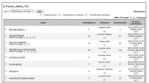 L’outil le plus séduisant pour moi est la possibilité d’avoir un forum réservé aux élèves d’une même classe ainsi qu’à leurs professeurs. J’ai donc rapidement créé l’anpassé un forum Mathématiques pour mes élèves de Terminale S. La plupart d’entre eux ayant des difficultés mais étant motivés, cet outil a été très rapidement utilisé.