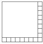 Les valeurs de n possibles sont donc 1, qui est sans intérêt, 4 et toutes celles supérieures ou égales à 6. De plus, on a un procédé de découpe : si n est pair avec n = 2k, on découpe un grand carré dans un coin, bordé de 2k − 1 petits carrés comme nous l’avons déjà vu pour n = 6 ou n = 8. Voici par exemple le cas n = 18 :