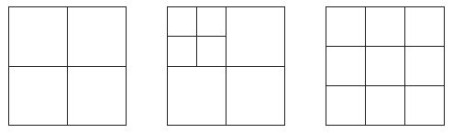 Chaque sommet du carré initial appartient à une partie carrée, ce qui exclut les valeurs n = 2 et n = 3 (n = 1 signifie que l’on ne coupe pas).