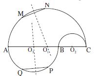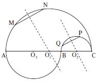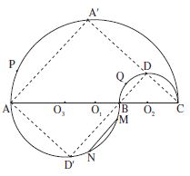 Les demi-cercles sont situés de part et d’autre de la droite AC. Les points M, N, A (respectivement