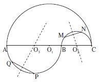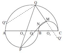 Les demi-cercles sont situés de part et d’autre de la droite AC. Les points A, P, Q ou B, P, Q sont